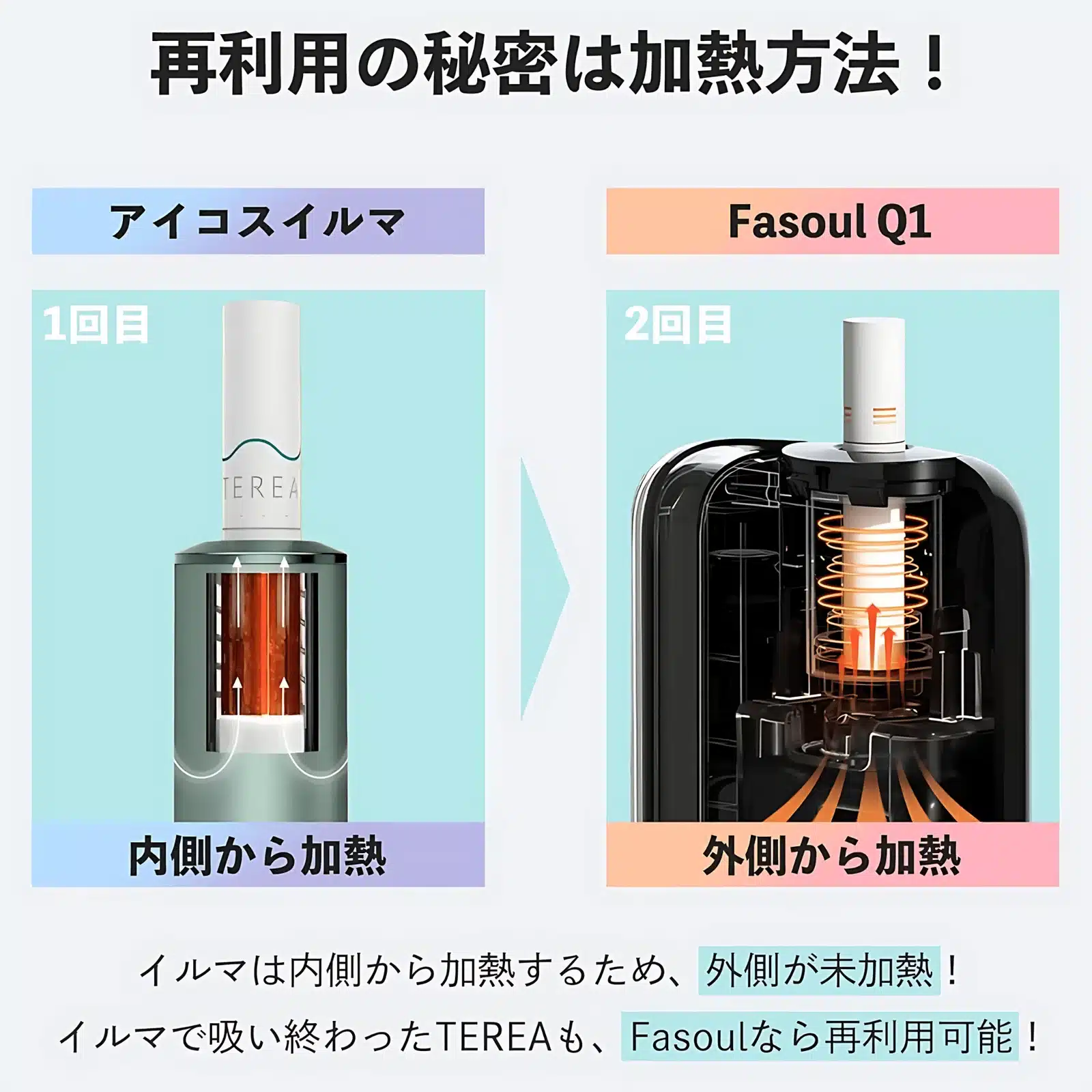 全新推出的 Fasoul Q1 加熱煙機,專為 IQOS ILUMA 系列煙彈(TEREA)量身打造,採用先進的「二回加熱技術」,全面提升煙霧量與口感層次,升級你的每一次吸菸體驗。